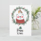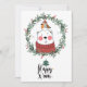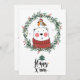 Vimsiskt folkligt målade julbjörn på vintersötaren med en fågel i julhatt, Julhälsningar lycklig Julafton kort för att anpassa sig på kortets baksida.
