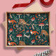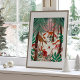 Gröntens bakgård med en söt nostalgisk grönt och rosa traditionell klassisk julillustration med skogsdjur i naturen. Perfekt utöver din samling för dina kära till en jul Party. Originalteckningar av Caroline Bonne Müller