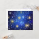 Julblå bakgrund med gyllene snöflingor inbjudningar