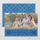 Festlig randig julkort för foton med din favoritbild och en nedre kant av blå tartanrandig mönster. Anpassa med din egen hälsning och namn.