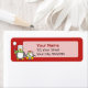 Lite penguin tecknad med snöboll och en blekt. Bägge på sig grönt scarfs och jultomter.