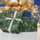 Julbladsbär mistletoe och holly Wrapping Papper med grisen i rött och grönt på en mörk grekiska texturerade bakgrunder. Inkludera även snöflingor och stjärnor. För en traditionell men sofistikerad jul.