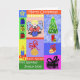 Många lite julgåvor i ett kort med hälsningar i fyra olika språk