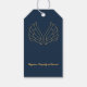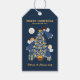 Kute Jul-änglar dekorerar träd. Juletiketter på mörk blått bakgrund.