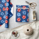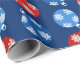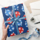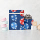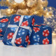 Julblått och rödprydnadsföremål med snöflingor presentpapper