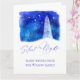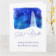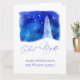 Julens anpassade viks med Julhälsningar kort med söt blå och vit originalgrafik från en snö-scen med mörk blått himmel med stjärnor, snö flingor och en träd med blomsterskript i blå tyst natt. Lägg till din egen text nedan om du vill göra en personlig Julhälsningar. Konst upphovsrätt Ann Powell - alla höger reserverade.