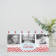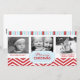 Söt, röd och vit chevron mönster och festive rand i blått och rött skickar familj och vänner julhälsningar i detta helt moderna fotohälsningskort.