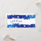 Snöblå illustration av God jul med trendig snöfall med vitt och blått snöflingor.