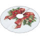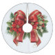 Träd-kjolen med en festlig julbog i rött och guld. Omgiven av poinsettiska blommor, gräs och Juldekorationer.