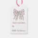 Få dina presenter att framträda med vår märkre för gåvor från God jul. Den här moderna märkrn visar upp en vinklad konsthantskugga av en båge som är skräddarsydd från en sträng av rött ljus. Lägg till en personlig genom att ange ditt namn på märkrn. Idealisk för dem som tittar för ett enkelt men snyggt sätt att göra presenter extra speciellt. Dessa märkre är perfekter för att sprida helgdag jublande med kreativitet.