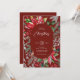 Moderna vattenfärgblommor och löv, poinsettia, söta fåglar och röda bär för julfestinbjudningar med anpassningsbar vit typografi. Elegant, utformning av festiv julfest med djup röd bakgrund.