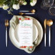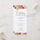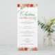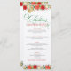 klockor och blomma gräns under julen i guld med typografi och jultomte - elegant. Röda poinsettias, vit ros och evergreens.