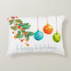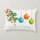 För dig som gillar en mer modern juldekor, denna samling av blommor och ornament är något för dig. Denna julkudde har icke-traditionella julfärger och mönster. Det blommande grönskandet har en kvist orange bär och ornamenten är turkosa, orange och limegröna. Texten "God Jul" kan personanpassas.