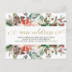 Detta trendiga julkort för byte av adress har en ram av akvarellmålade röda och vita julblommor med festlig grönska, kottar och bär. Orden "ny adress" visas i elegant, virvlande falskt guldfont. Ett enkelt men stilrent julflyttningskort som du kommer att vara stolt över att skicka till vänner och familj.