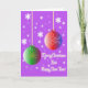 Centrera av detta kort är 2 julgranbollar som hänger från guld- rep. God jul och gott nytt år är meddelandet.