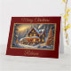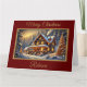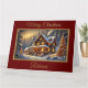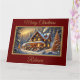 Ett fantastiskt vinterlandskap med en vacker stuga som dekoreras till jul i detta festliga helgdag kort. Lägg till egen personlig.