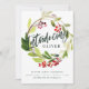 God julfärgsröd och botanisk grönt med helgdag för födelseanmälan. Vackert vattenfärgat målat löv och modern manusext. En del av en samling.