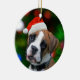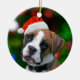 Fawn och white boxer-hund har en för liten julhatt och ser söt ut med ljus i bakgrunden hundälskare helgdag keramiskt prydnadsföremål