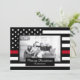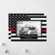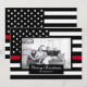 Dela dina semesterönskningar denna jul med ett unikt personligt fotobrevkort. Denna design har en svart-vit brandman tunn röd linje amerikansk flagga med stjärnor och ränder för att dekorera runt din bild. Under ditt foto finns ett svart område för hälsningen som lyder "God Jul" och ditt familjenamn nedan för att du ska kunna anpassa det. Baksidan av kortet har också brandmannen tunn röd linje amerikansk flagga. Ersätt fotot som visas med ditt eget för ett unikt kort som din familj och vänner kommer att älska! Designad av konstnären ©Tim Coffey. Fotografi © Storytree Studios, Stanford, CA.