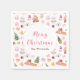 Den här eleganten och den festila napkin har ett vattenfärgat gingerbröd, gingerbröd tåg, kakaostativ, kakaostativ, kaka burk, hett kakao, rosa poinsettia blommor och Julgranar. Texten kombinerar handskript och sans serif typsnitt för en snyggt och ett modernt utseende. Det här är perfekt till jul party.