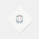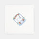 Denna bröllopsdusch eller repetition middag servett design har en handmålad röd grön och blå akvarell bröllopskrönika med de första initialerna av de blivande makarna, tillsammans med utrymme för datum för evenemanget.