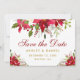 Jul Bröllop Vattenfärg Poinsettia Blommor Guld Röd Spara Datum-kort