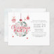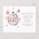 En cool ljus helgfamilj och kollegor fest budget inbjudningskort design som har en vattenfärg julgransprydnader blomster mistel och bär med festlig röd handstil och anpassad text som kan anpassas.