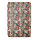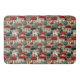 Mycket vacker julbybadmattor med en bild av ett lantligt byhus med röda tak, röda svampar och fina tallar, i en stickad effekt.