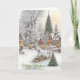 Den här julkortet visar en charmig by som ligger i en snöig dal. Byn lyser med varma ljus som kommer från stugorna med snötäckta tak och skapar en fridfull stämning. Låt det här kortet väcka känslor av nostalgi, värme och julens magi, vilket gör det till det perfekta valet för att sprida festlig glädje.