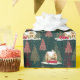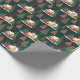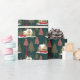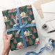 En charmerande julby med papper inslagning med mysiga hytter, röda vintagar, snönära gräs träd och snö mot en gynnsam grönt. Den här nostalgiska vinterscenen ger värme och glädje åt din julhelg presentförpackning.