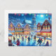 En häpnadsväckande vinterscen som fångas i en målning av människor som glider på en rosa
