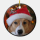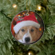 Gulligt foto av en walesisk Corgi för Pembroke som ha på sig en Santa hatt, på en julprydnad. Förtjusande hund älskaredekoration!