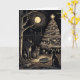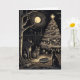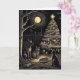 Ett varmt julkort med en mysigt scen med en glad hund och två lekfulla katter som delar en fin matskål. Den här charmerande illustrationen fångar tillsammans och kärlek under julhelgen mot bakgrund av det tilltagande helgdag och det mjuka snö.