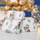 Denna söta julomslutning har en papper typisk vit bakgrund med vackra vilda skogsdjur med julhattar på huvudet. Mönster ligger helt med gräs träd och lite presenter med rött hjärta. för barn i perfekt, papper julomslutning eller presentomslutning för baby 1 jul.