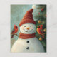 Juldagen Hälsning Snögubbe och kardinaler Vykort