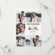 Nyligen förlovad! Skicka julhälsningar och en bröllop spara datum tillsammans under helgdagarna med eleganten fem fotosamlingskort. Utformningen har ett vackert handskrivet penselteckensnitt med stil-typografi med en faux-guld-banderoll under ord "God jul". På framsidan har designen plats för fem foton. På kortets baksida har designen plats för all information om datum. Anpassa designen genom att ersätta exempelbilderna och texten.