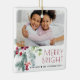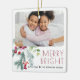 Julgransprydnad med ditt favoritfoto, modern och klassisk typografi, vattenfärgade julbärsgrenar.