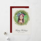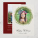 Vattenfärg juldekoration med tallbar och texten "God Jul", platt julkort för foton på en antiek krämfärgad bakgrund. Baksidan av kortet visar ett andra inramat foto på en djupröd bakgrund med mallinjer för din egen text.