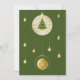 Eleganta julgransprydnader inklusive gyllene kulor och festliga dekorationer på en grön bakgrund som skapar en festlig julstämning.