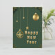 Eleganta julgransprydnader inklusive gyllene kulor och festliga dekorationer på en grön bakgrund, som skapar en festlig julstämning.