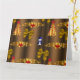 Ett sött och färglöst brunt julkort och guld med ett sött festive mönster i guld Julgranar, gyllene holly med röda bär, guld-bögar och lite snögubbe med blå färg i mitten. Det här söta julkortet kommer säkert att tillföra dina helgdagar en aning färg och festlig anda i år.