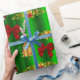 En dekorativ och färglös julomslutning i grönt papper med ett festligt mönster av guld, Julgranar, rosett band och bågar, guldklumpar med röda bär och söta snögubbar klädda i rött sammet, för att ge dina julklappar en silke och färgstark beröring i år.