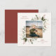 Festiv ram med botaniska juldekorationer, platt fotokort. Funktioner, rustik röd färg typografi och matchande enfärgad baksida.