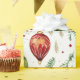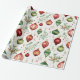 Juldekorationer och blommor i ett festligt julmönster med gröna, röda och vita färger