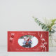 Fira julsäsongen med röda prydnadsföremål, vit rosett band och bögar. Anpassa med foto och text.