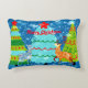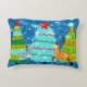 Juldesign med dekorerad, illustrerad träd, hjort och snö, på blå bakgrund, accentkudde. Tack vare Hungryjpeg och Kreativ Fabrica för en del av inslag i designen.