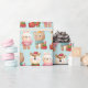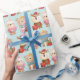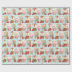 Förpackning papper med en söt illustration med en kniv, en björn och en hjort som är klädd i festive-utrustning. Vämjeligt och vismiskt.