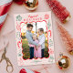 Det här helgdag av roligten har ett foto av lodrät med visuella, handritade julillustrationer i rött och mörk grönt över en ljus rosa bakgrund. Den moderna typografin hälsning säger " Happiest Helgdagars". Anpassa den här designen ytterligare genom att lägga till ett annat foto och/eller ytterligare text på baksidan. Det ser ut som roligt, modernt och festligt! DESIGN TIP: anpassadet Bakgrund och färg är redigeraren verktyg.