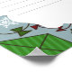 Mönstrar den nyckfulla upprepande julen att presentera en tova av röda och gröna tygdrakar i snowflaken fylld himmel.