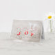 Vit duva med glada tecken på röd och vit strimlad sträng i snöflingor för jul